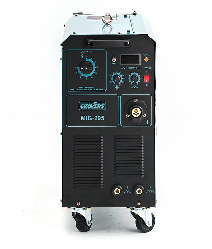 GROVERS MIG 295 - новый профессиональный промышленный однокорпусный полуавтомат для механизированной сварки в среде защитных газов.. Превосходные свойства сварочной дуги гарантируют минимальное разбрызгивание во время сварки в среде аргоновых смесей, а также при сварке в С02. Источник оснащен встроенной тележкой на колесах, имеет ручки для перемещения. GROVERS MIG 295 может осуществлять сварку проволокой диаметром от 0,8 мм до 1,2 мм (для сварки углеродистой и нержавеющей стали) на катушках D300 и D200